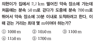 x명의 입장료 > a명의 단체입장료 (단, x <a) - 거리, 속력, 시간에 관한 문제