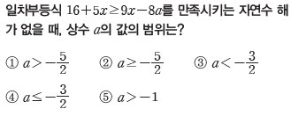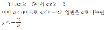 [풀이] 이런 유형의 문제들은 부등식의 해를 수직선에 표시하고 문제의 뜻에 맞게 미지수를 생각하여야 합니다.