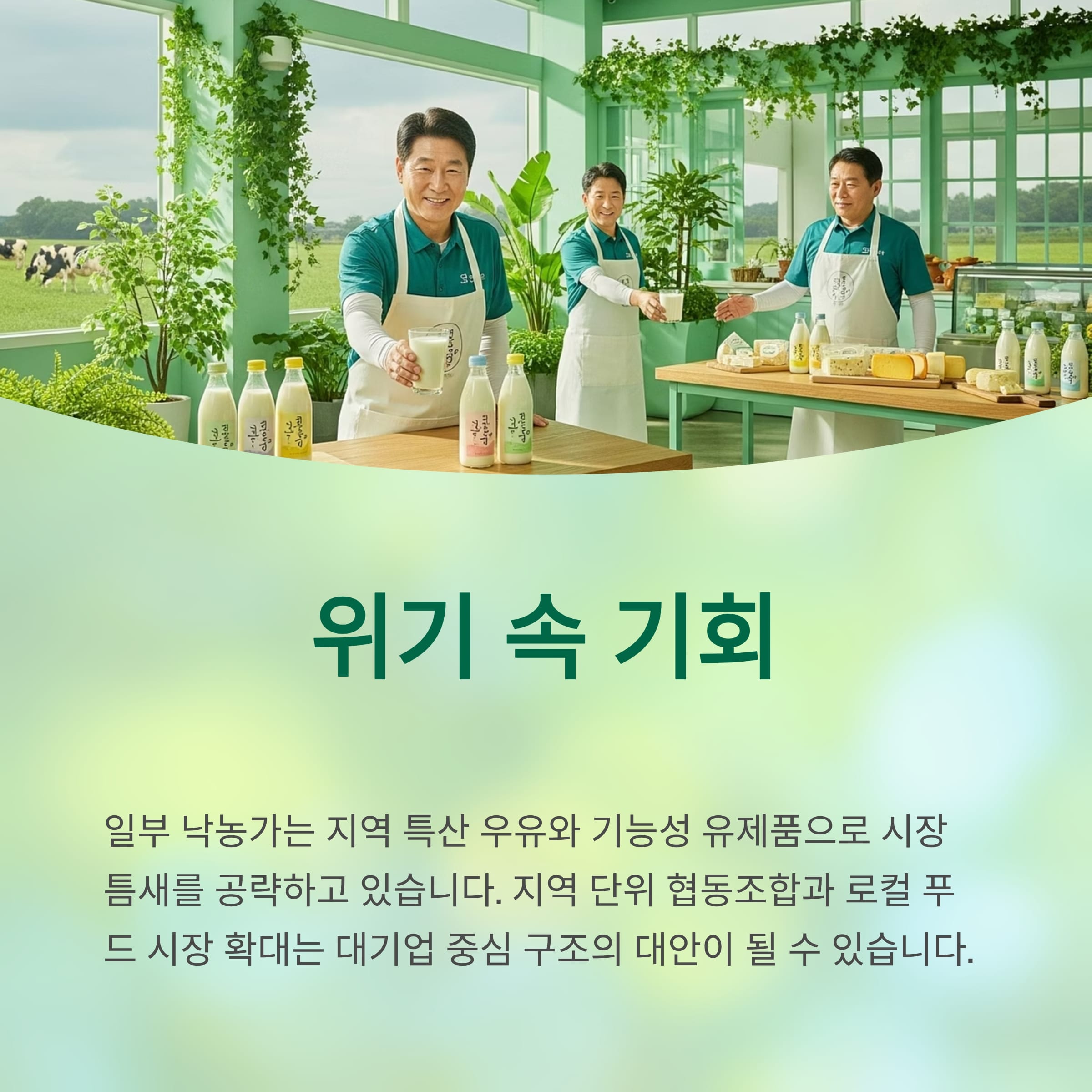 위기 속에도 기회는 존재합니다. 일부 낙농가는 지역 특산 우유나 기능성 유제품을 통해