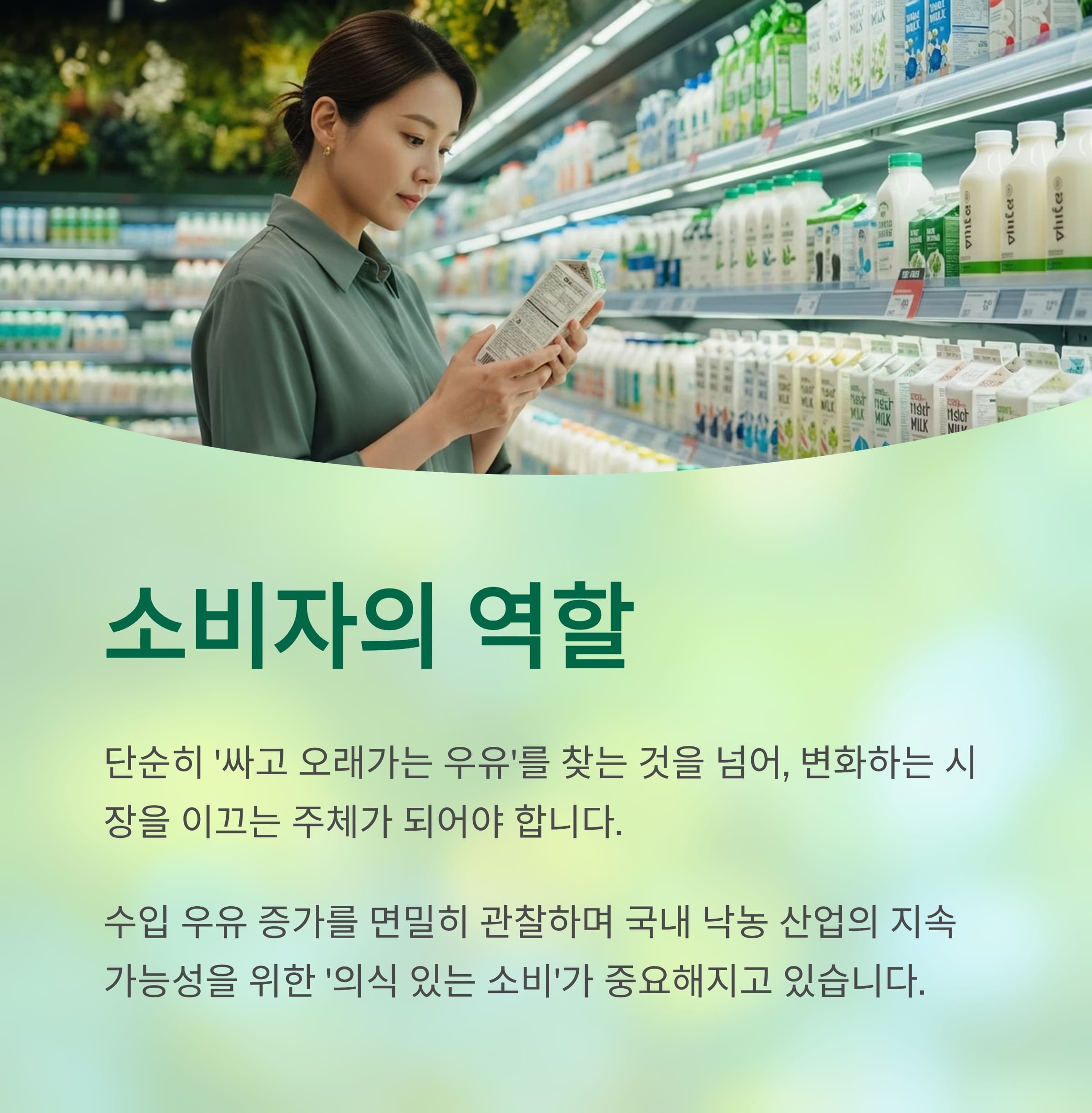 우리는 단순히 ‘싸고 오래가는 우유’를 찾는 소비자가 아닌, 변화하는 시장을 이끄는
