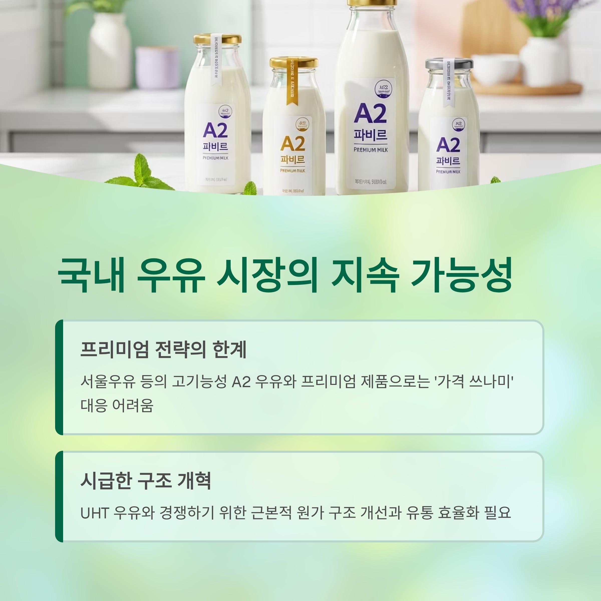 특히 UHT 우유와 같이 가격·보관·유통에서 강점을 지닌 제품들과 경쟁하기 위해서는