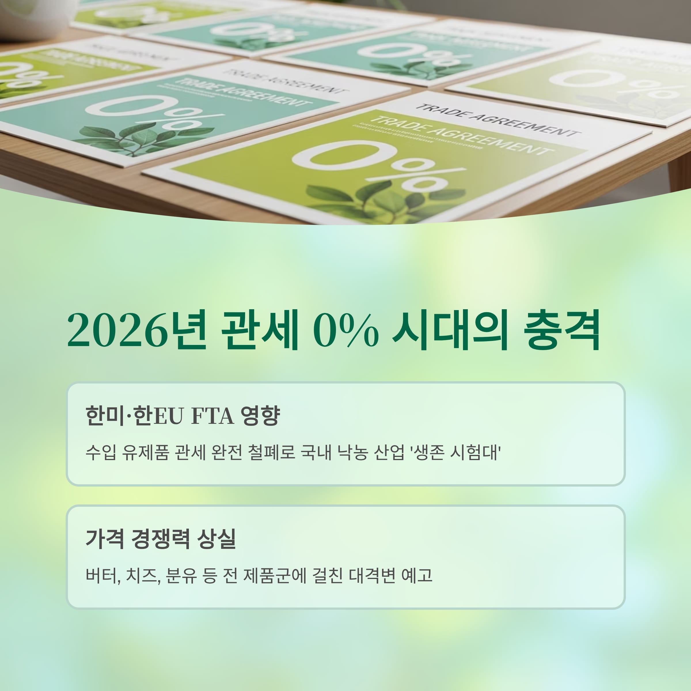 오랫동안 고가 정책을 고수해온 국산 우유가 이제 전례 없는 위기를 맞이했습니다. 2026년, 한미·한EU FTA에 따른 관세 0% 시대가 도래하면 국내 시장은 수입산 UHT 우유의 쓰나미에 휩쓸릴 것으로 보입니다. 이 글에서는 왜 국산 우유는 비쌌는지, 무엇이 시장 구조를 고착화했는지, 그리고 이제 어떤 변화가 우리의 식탁을 위협하는지 차근차근 짚어봅니다.