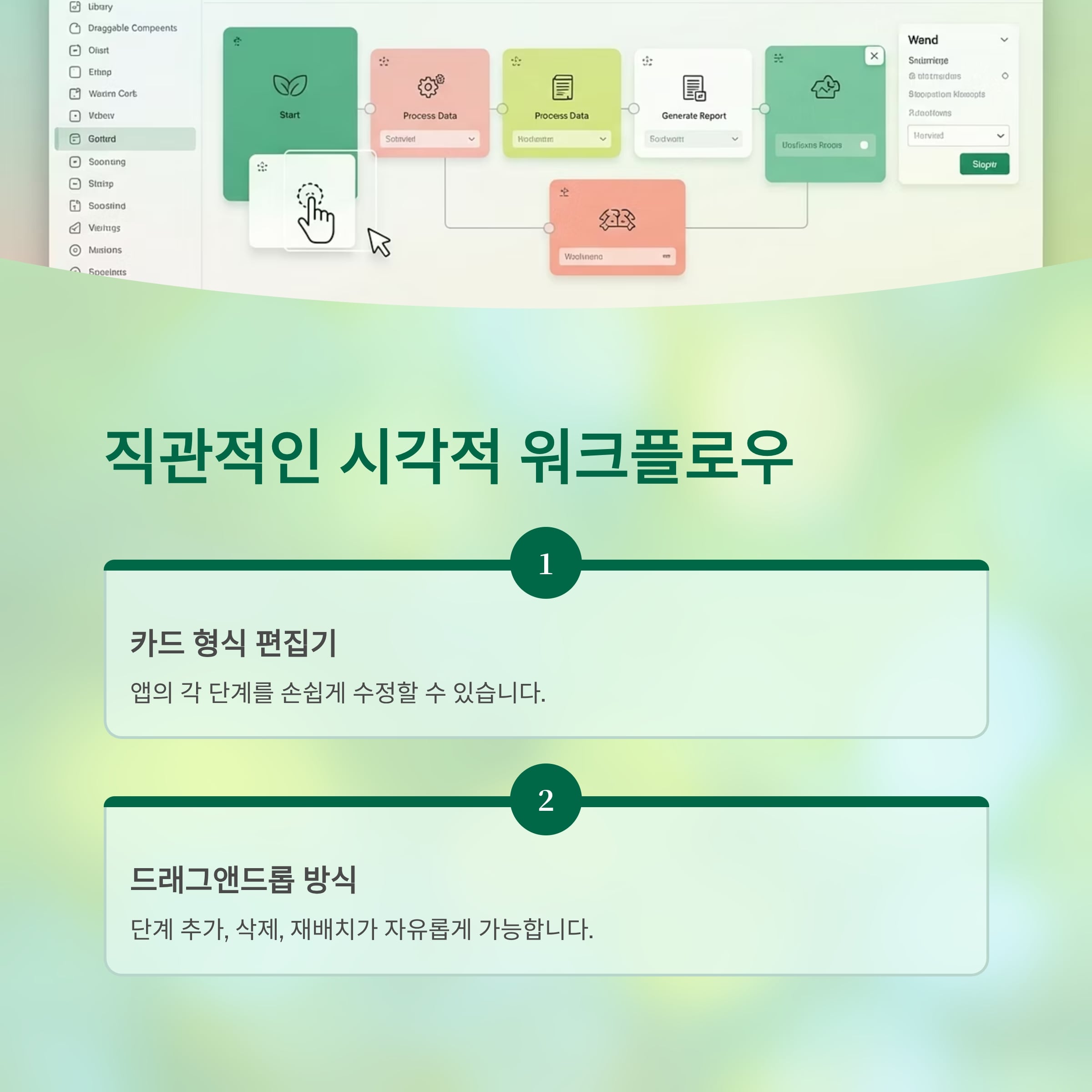 시각적 워크플로우 편집으로 직관적인 UI 제공