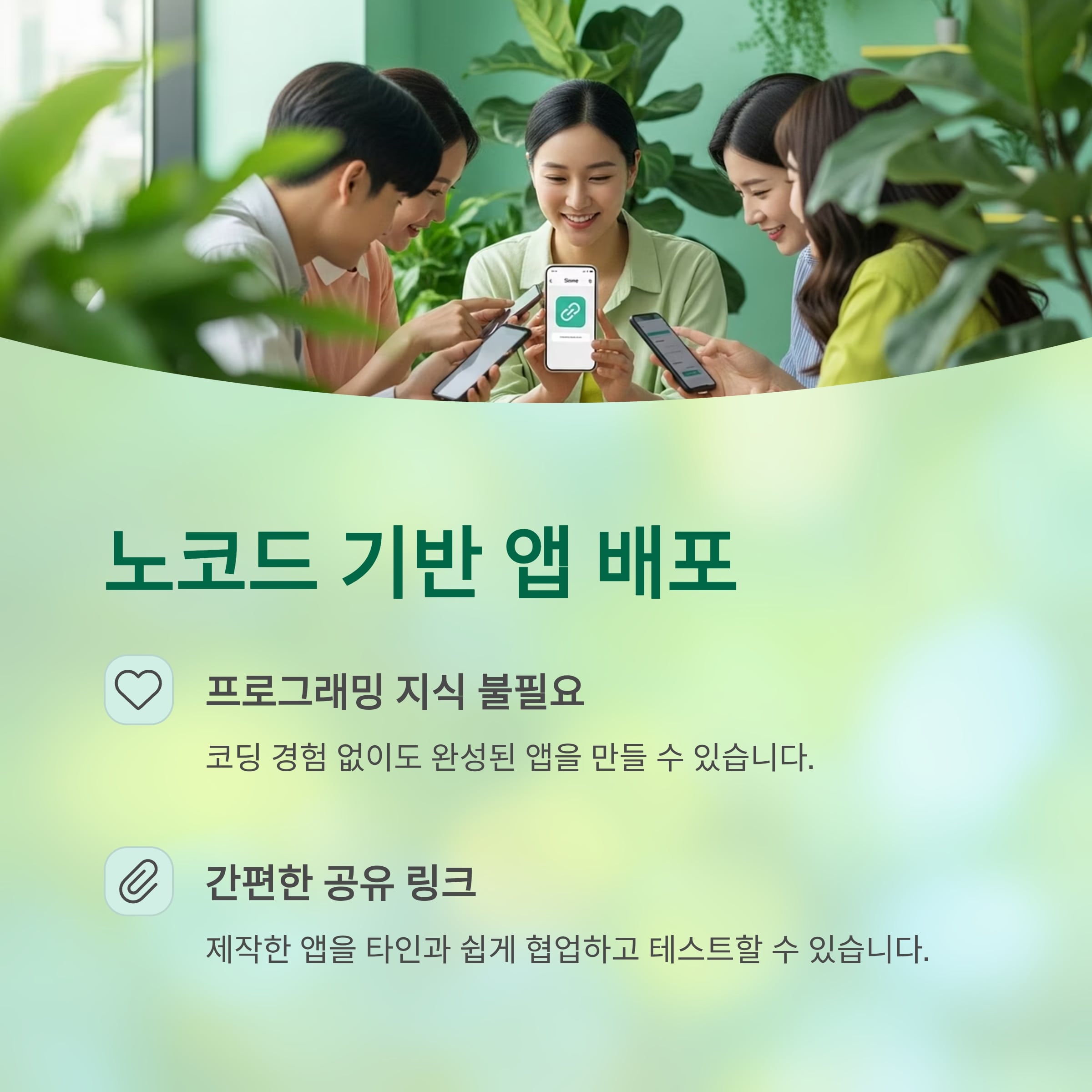 노코드 기반, 누구나 쉽게 앱 배포 가능
