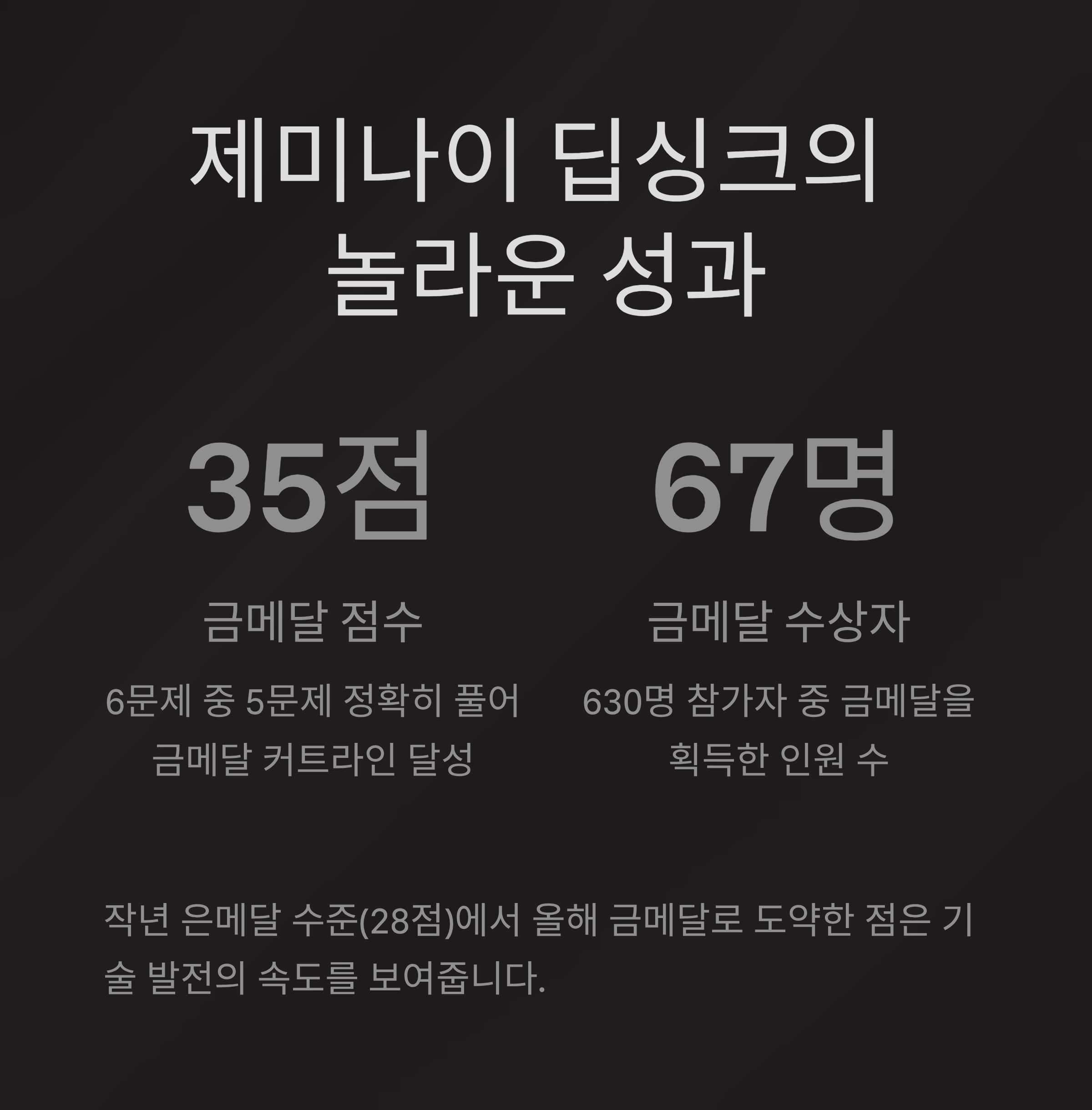 | 2025 | 제미나이 딥싱크 | 35점 | 금메달 획득 |