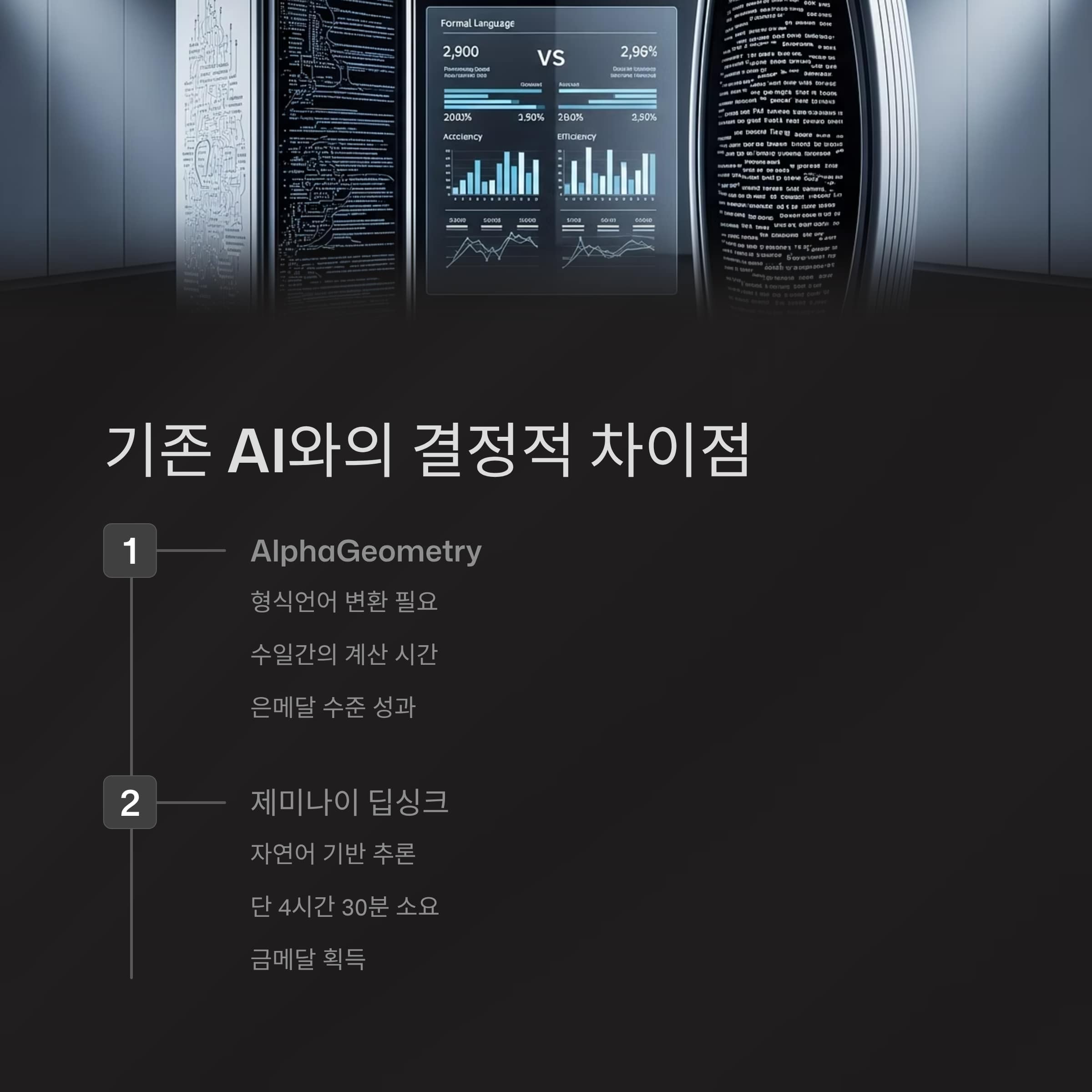 작년 AlphaGeometry는 형식언어 변환과 장시간 계산에 의존했으나,