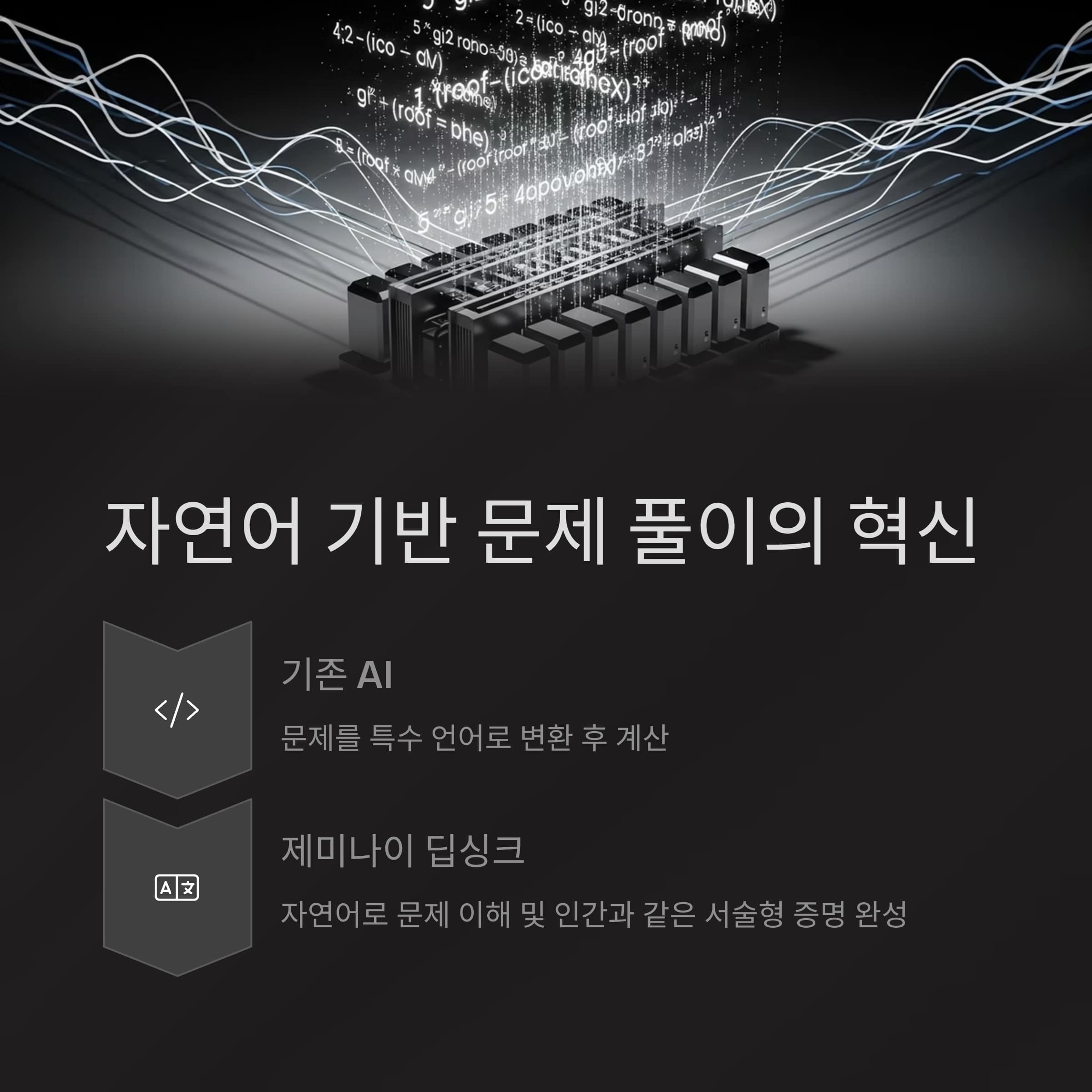 기존 수학 AI는 문제를 특수 언어로 변환 후 계산했지만, 이번 AI는 자연어로 문제를 이해하고