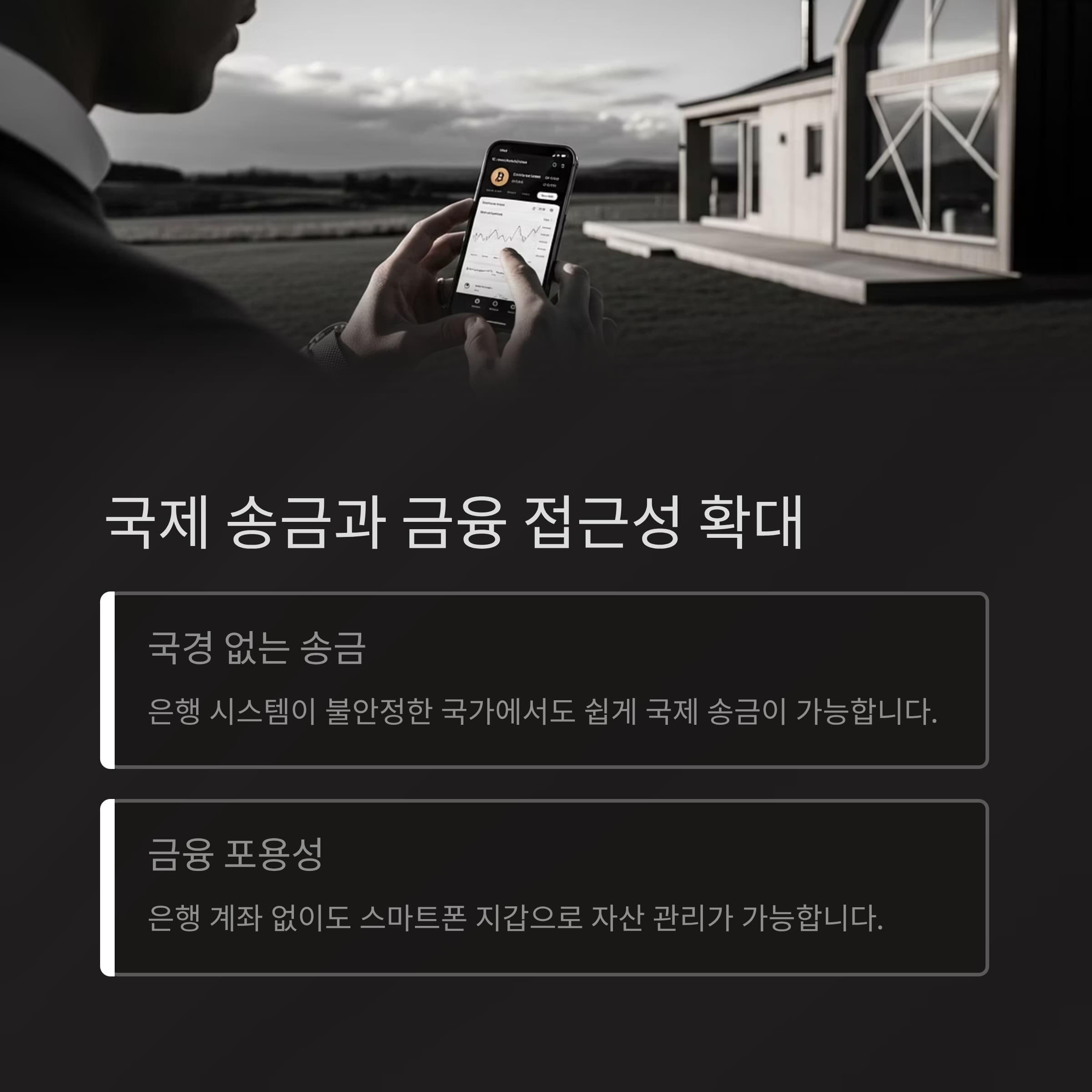 금융 접근성을 제공하며, 일부 국가에서는 생존을 위한 필수 수단으로 자리 잡아가고 있습니다.