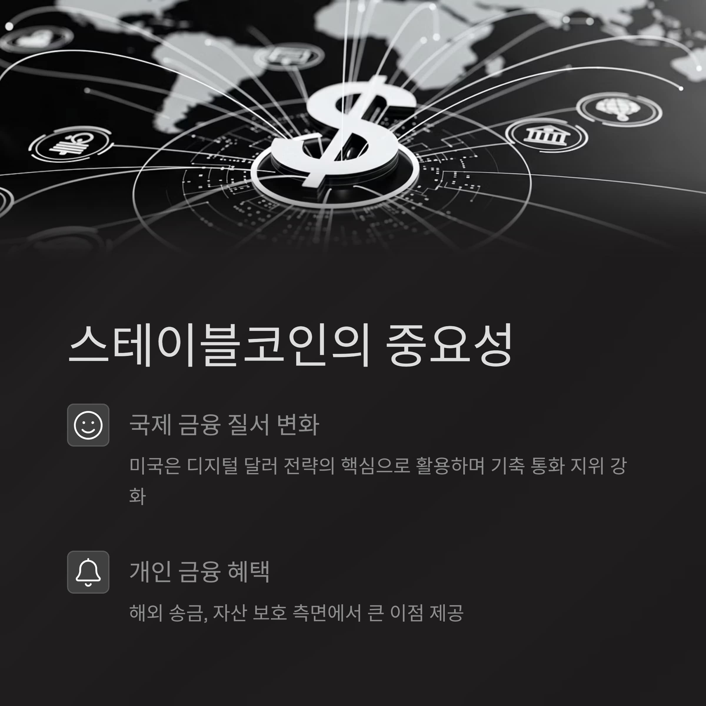 스테이블코인은 단순 결제 수단을 넘어 국제 금융 질서에 영향을 줍니다.
