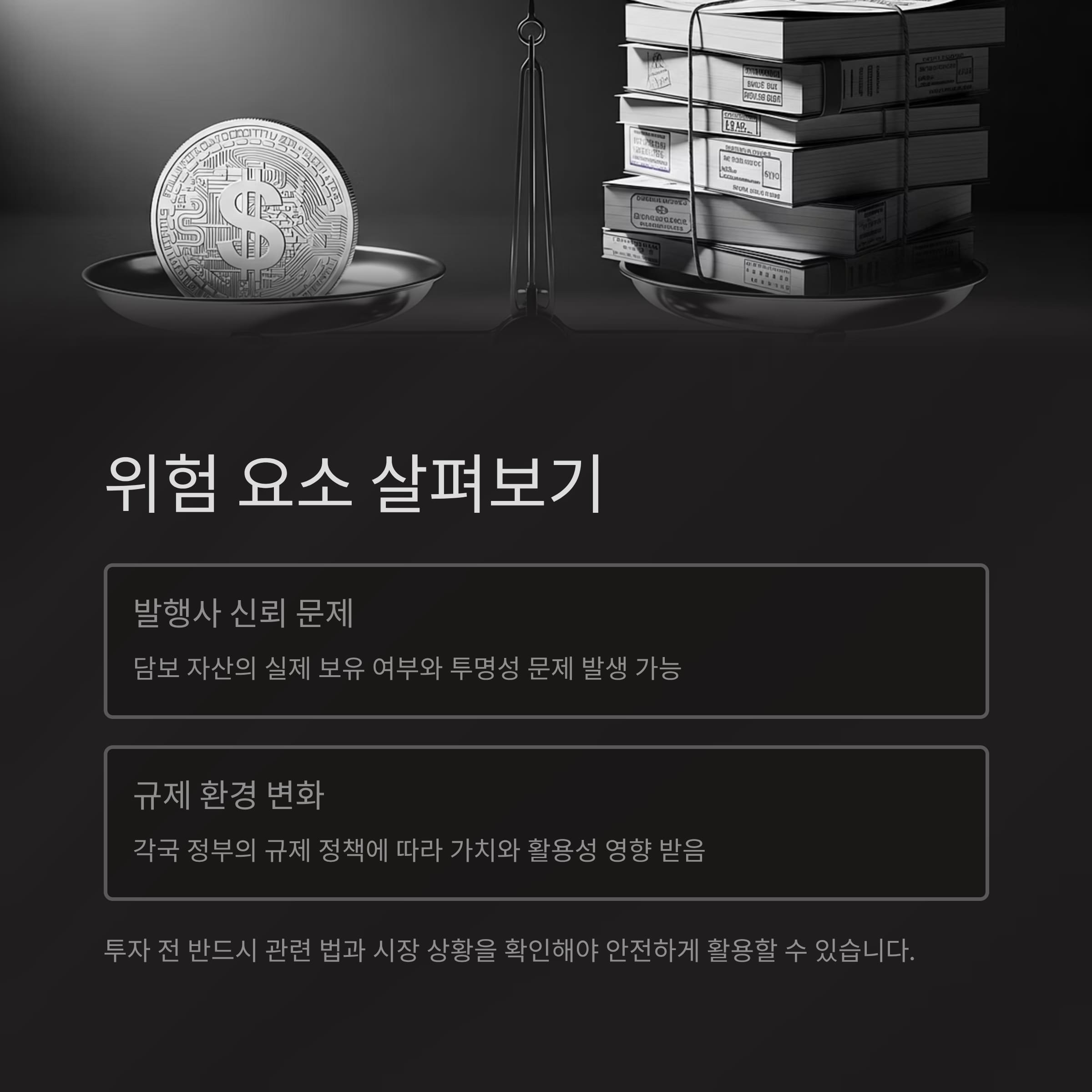 안정성을 강조하지만, 발행사의 신뢰 문제나 규제 환경 변화는