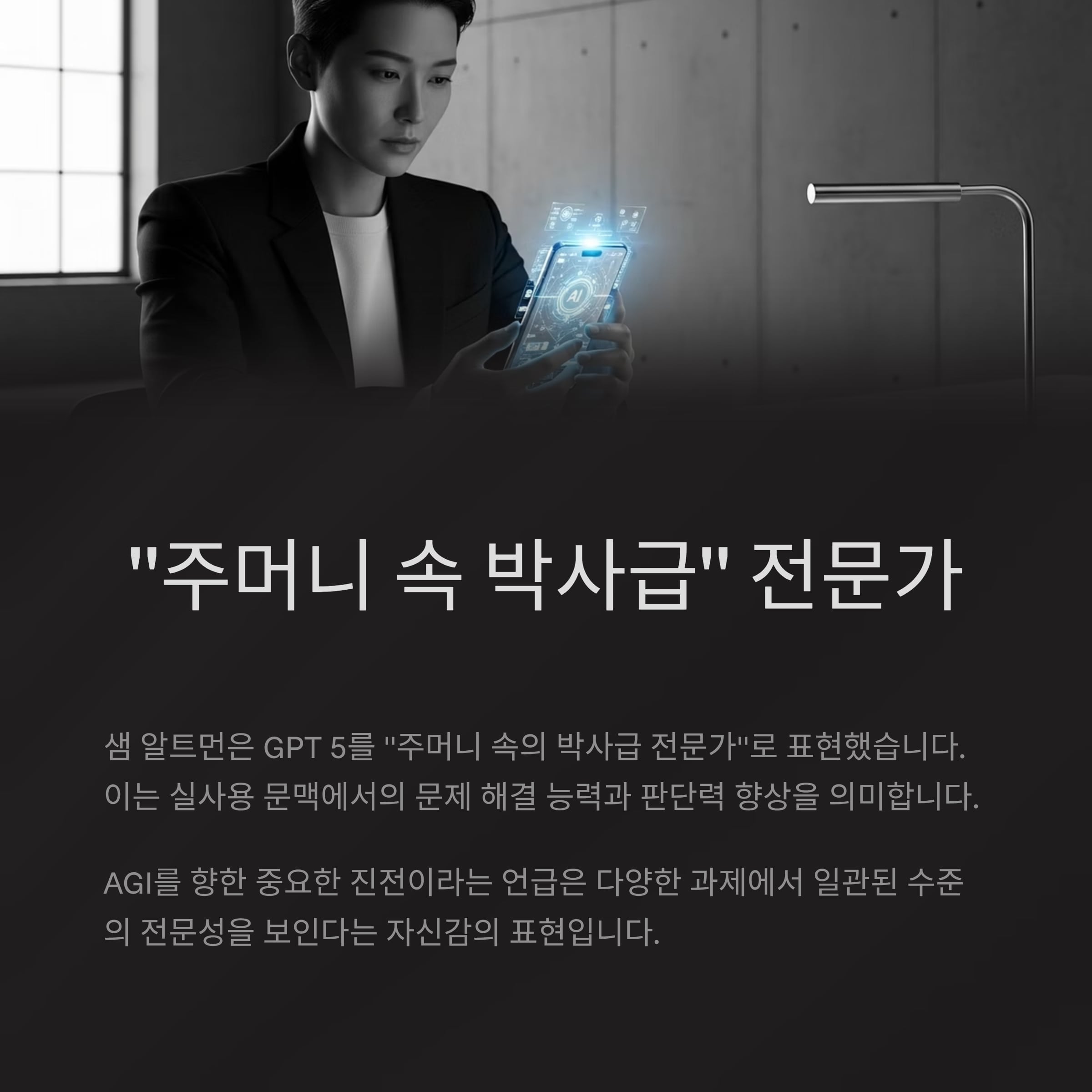 샘 알트먼은 GPT 5를 “주머니 속의 박사급 전문가”로 표현했습니다.
