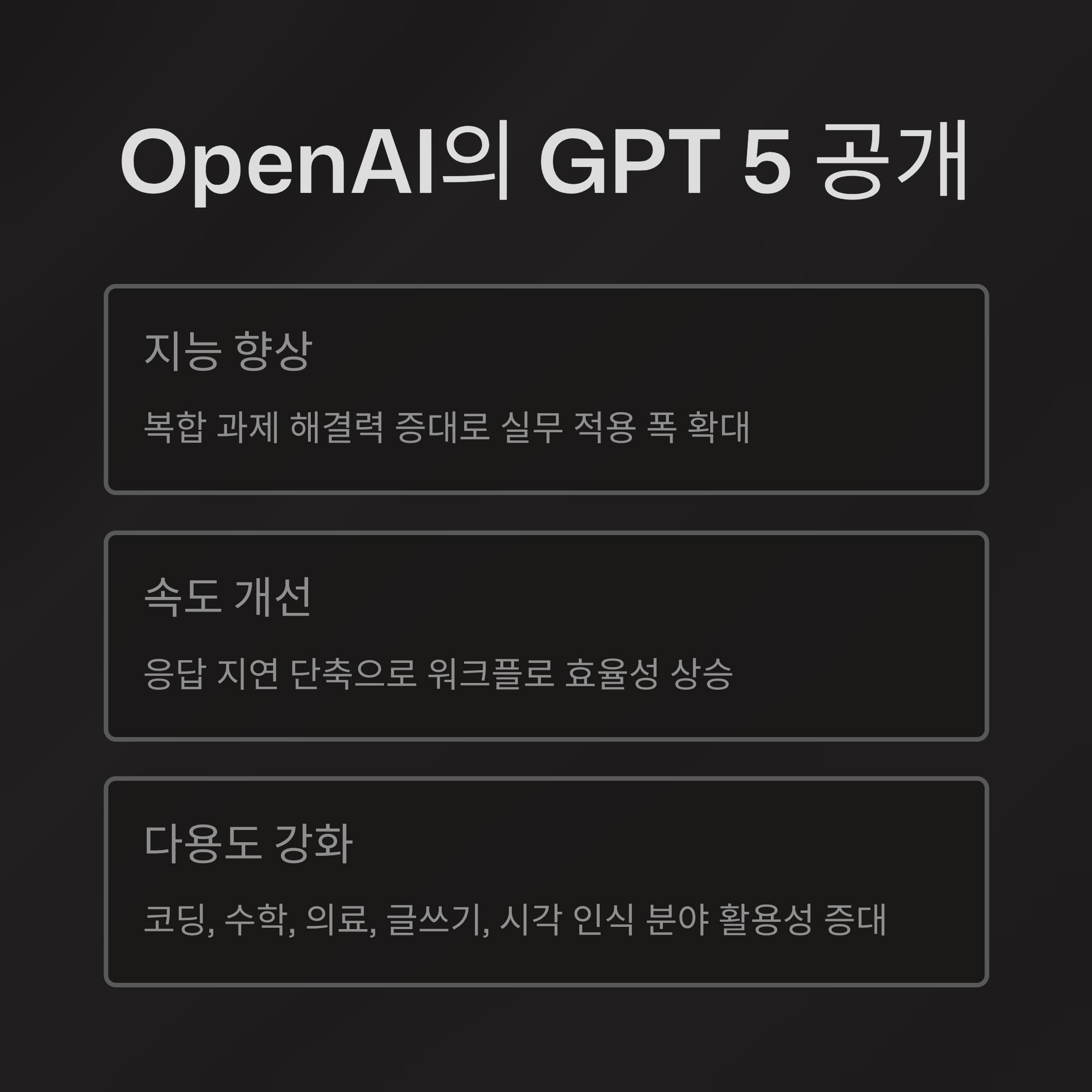 OpenAI가 2025년 8월 7일 GPT 5를 공식 공개하며 지능과 속도, 다용도에서