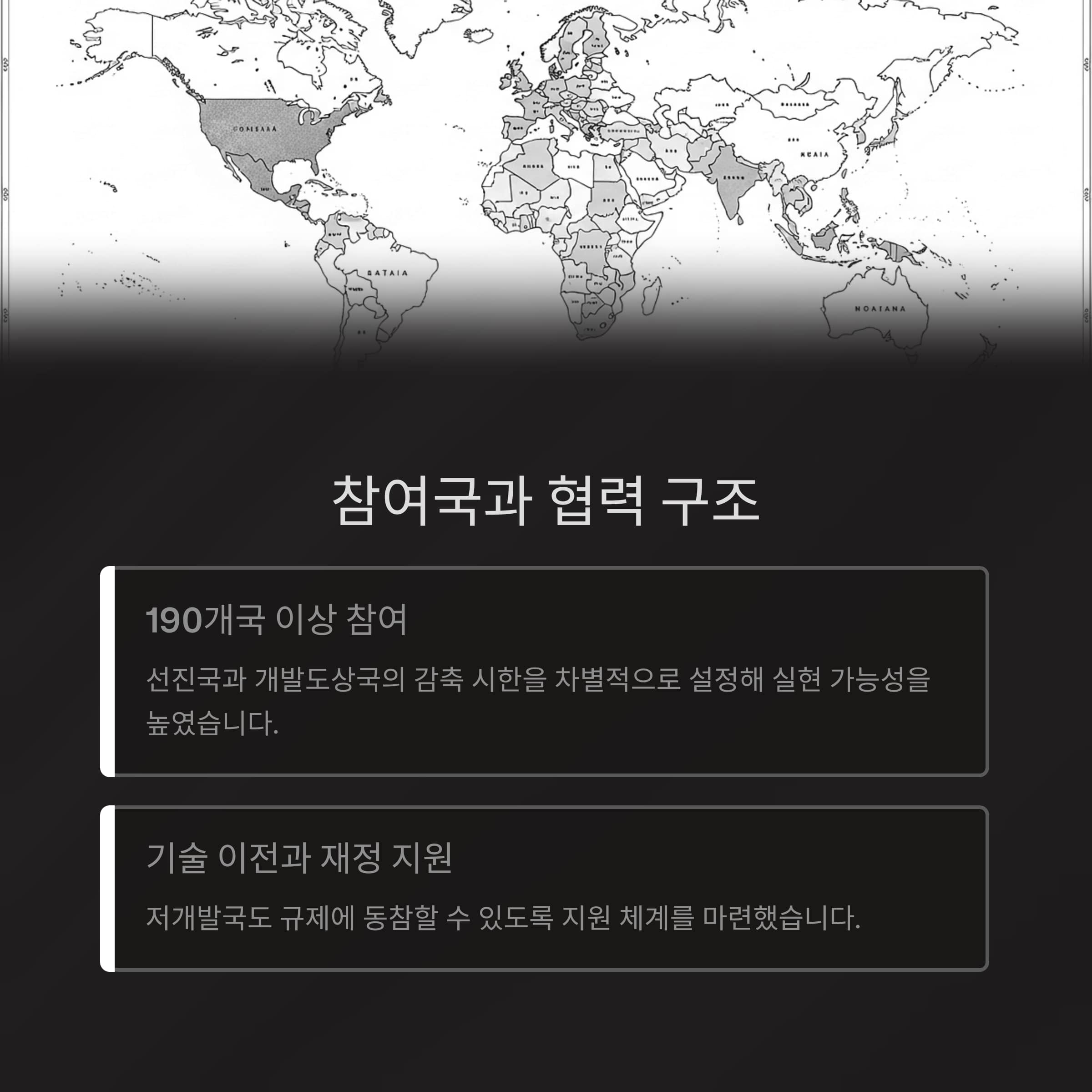 선진국과 개발도상국의 감축 시한을 차별적으로 설정해 실현 가능성을 높였습니다.