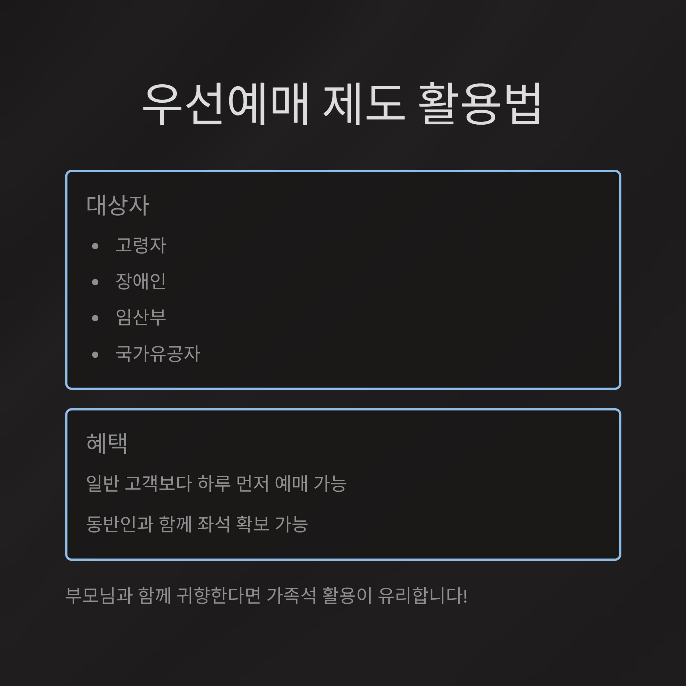 교통약자·가족석 등 우선예매 제도 적극 활용