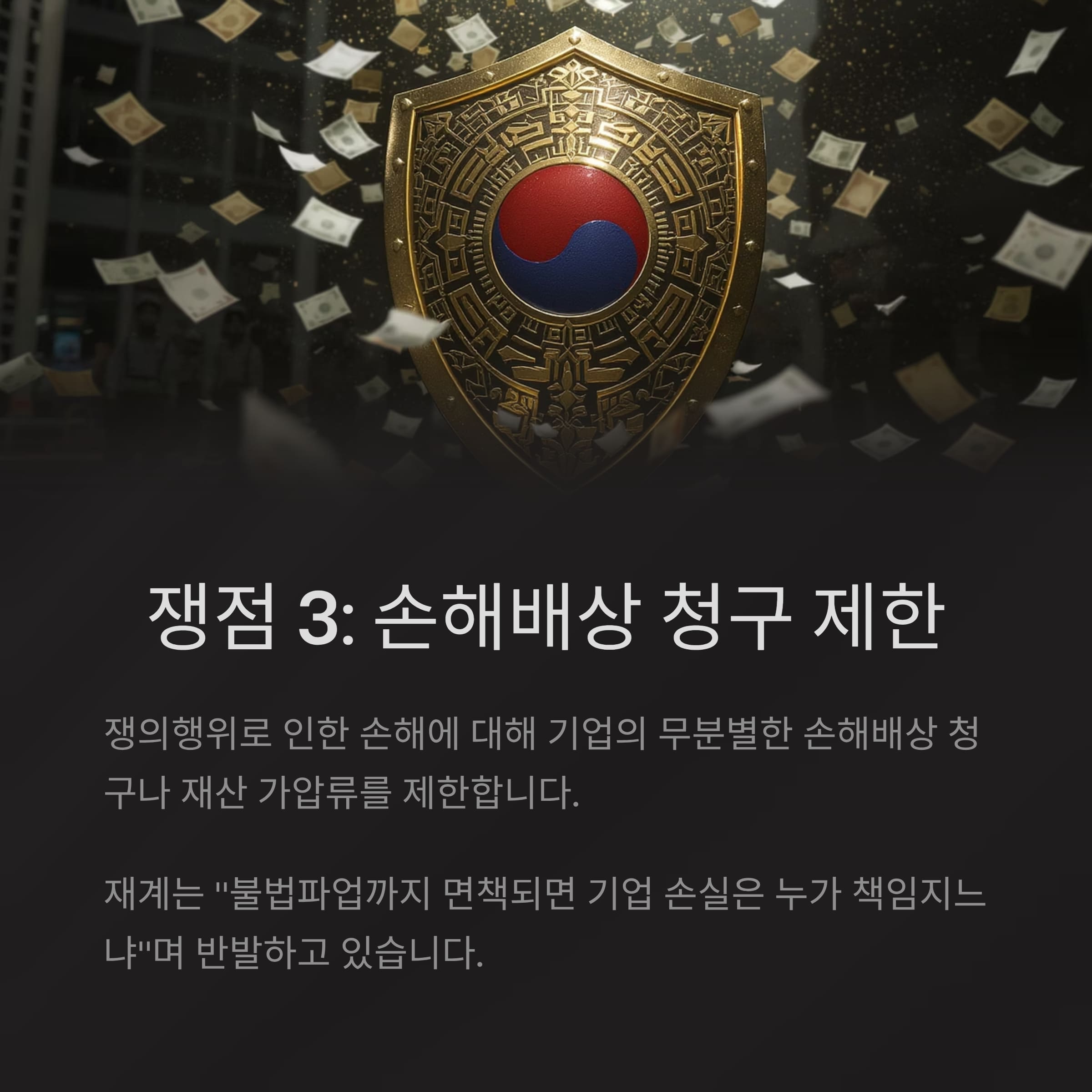주요 내용은 단체행위에 대한 무분별한 손해배상 청구를 제한하고,