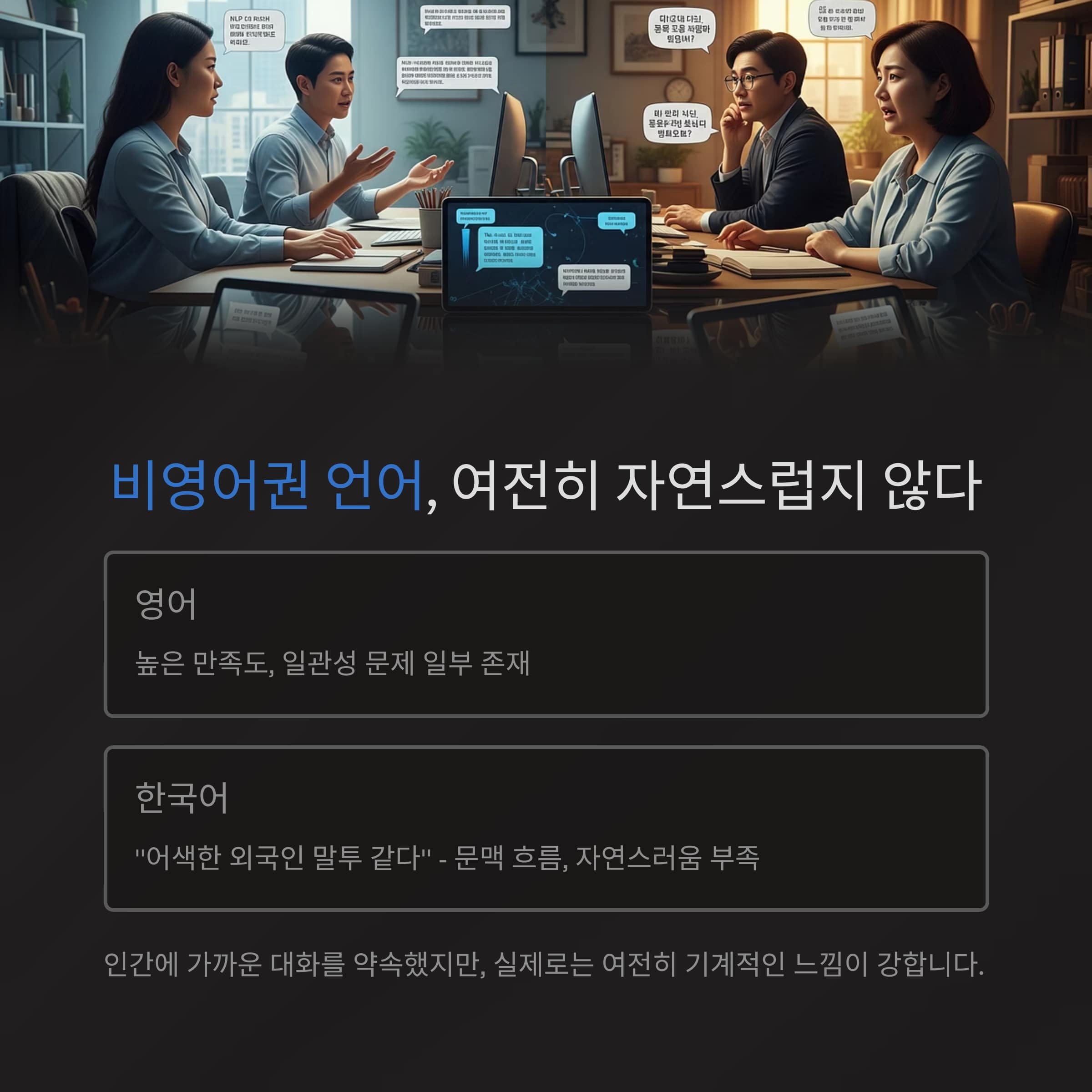한국어 등 비영어권 언어, 여전히 자연스럽지 않다