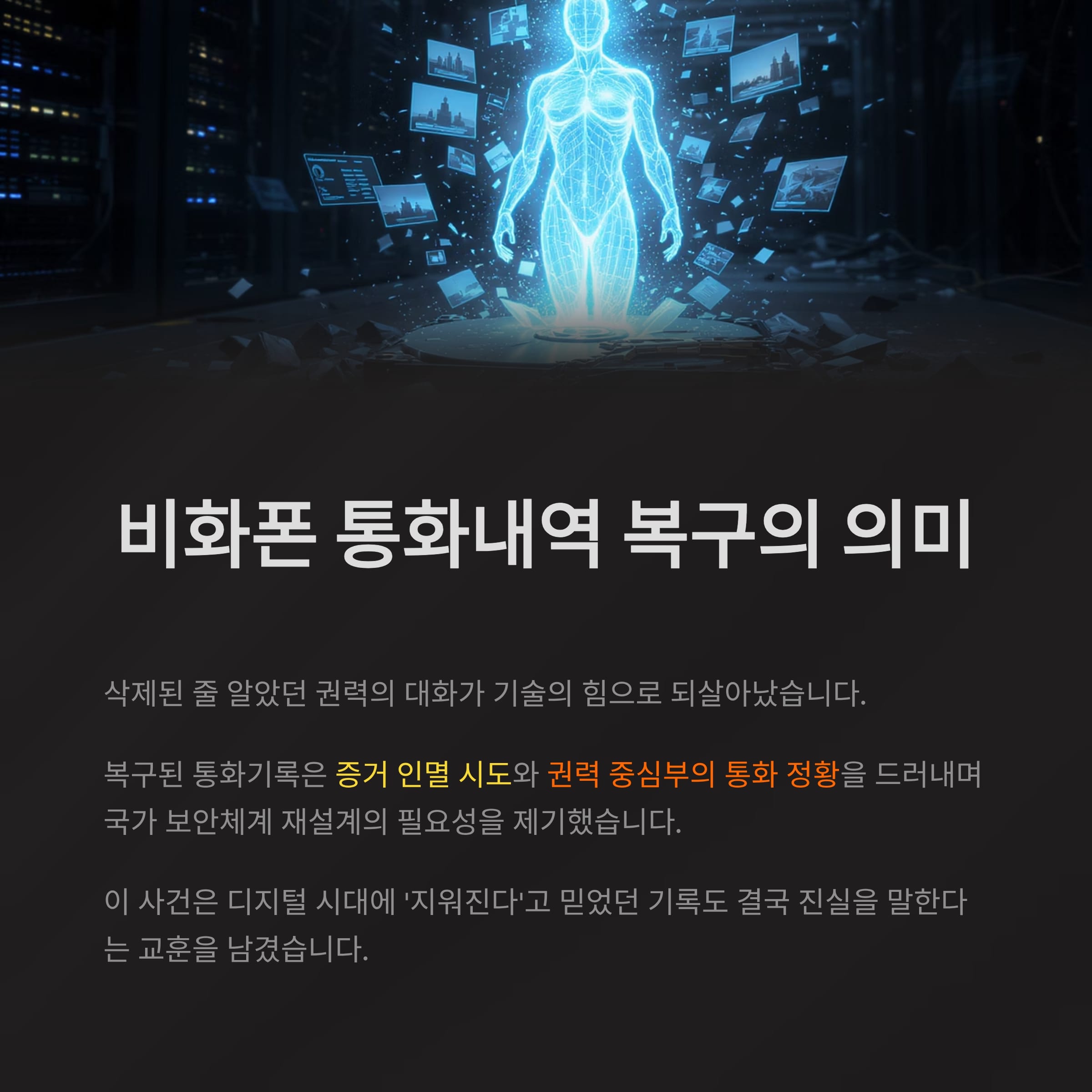 이번 사건은 단지 통화내역 복구라는 기술적 성취가 아닙니다.
