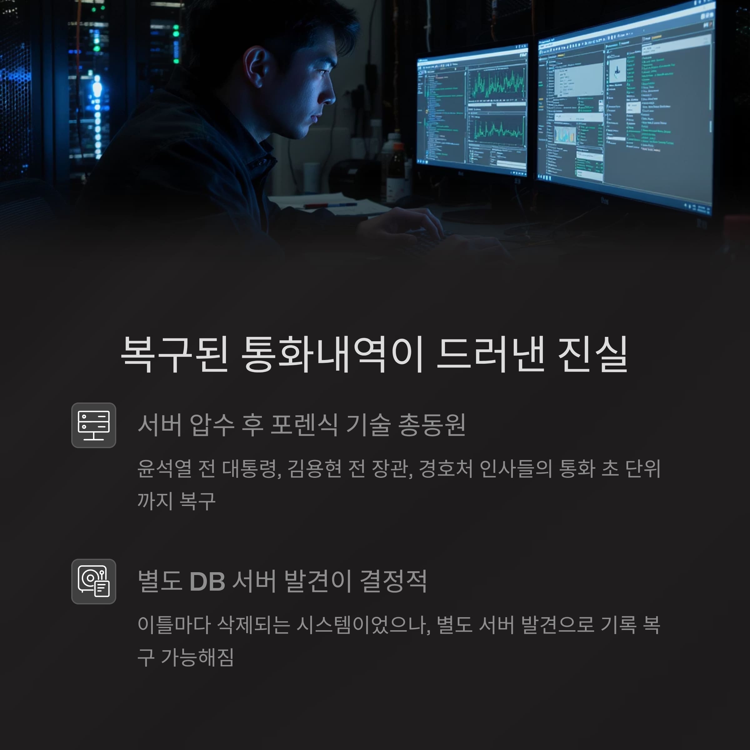 기존에는 이틀마다 삭제되도록 설정된 시스템이었지만, 별도 DB 서버가 뒤늦게 발견되며 기록의 생존 가능성이 생겼고, 이 발견이 수사의 결정적 단초가 되었습니다.