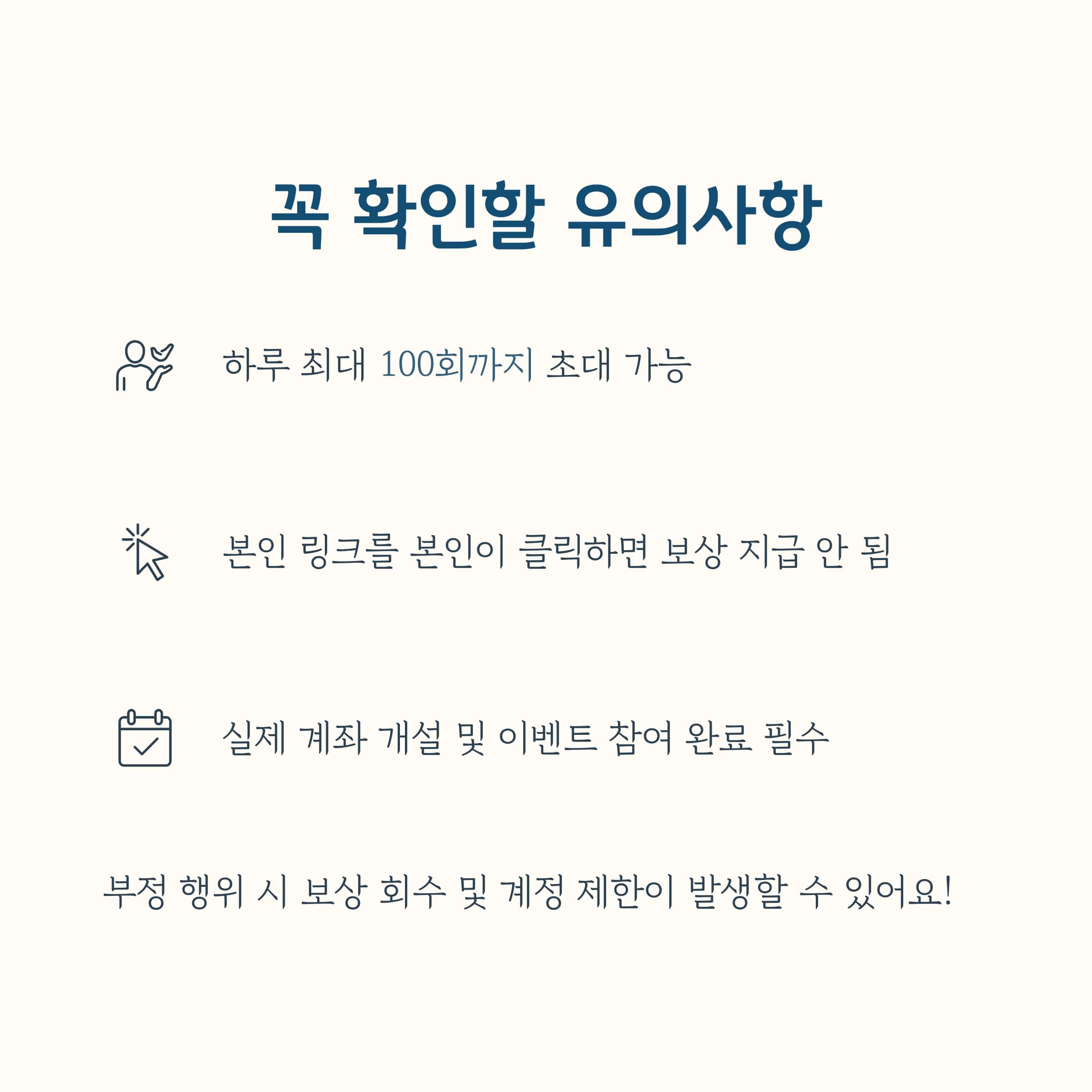 링크 클릭만으로는 보상이 지급되지 않으며, 실제 계좌 개설 및 이벤트 참여 완료가 반드시 필요합니다.