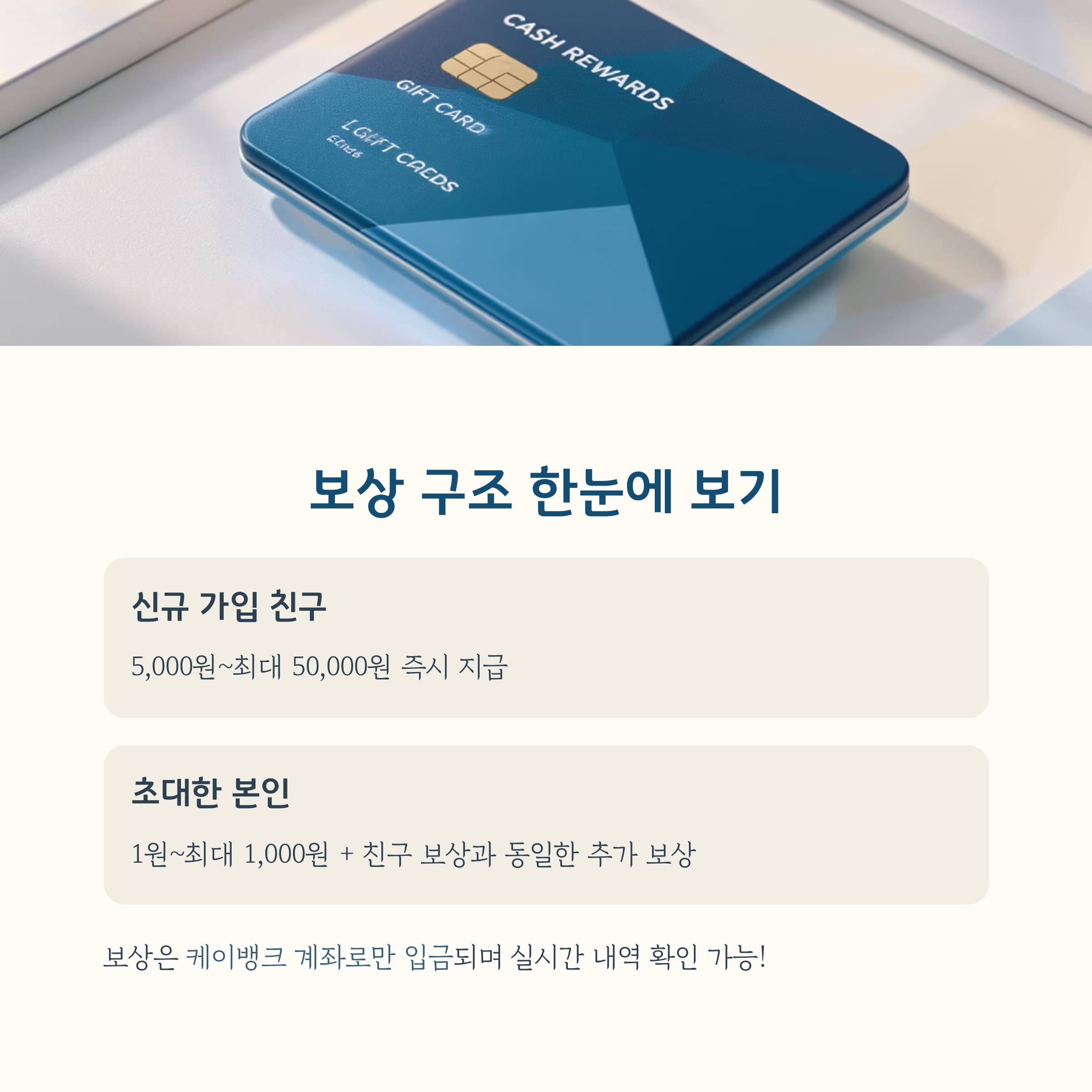 | 친구(신규) | 5,000원 ~ 최대 50,000원 | 링크로 가입 + 이벤트 참여 시 즉시 지급 |
