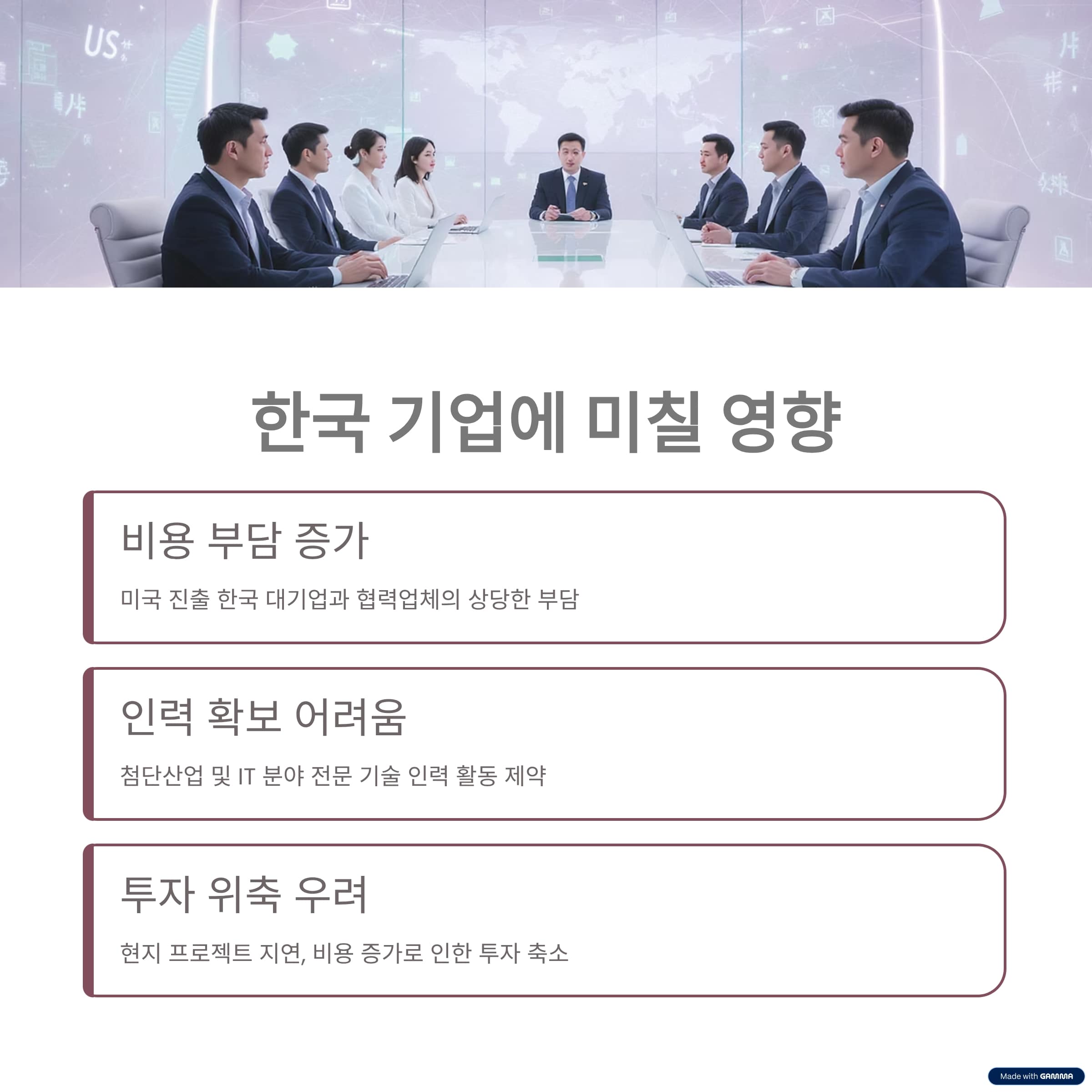 미국에 진출한 한국 대기업과 협력업체는 이번 조치로 인해 상당한 부담을 안게 됩니다.